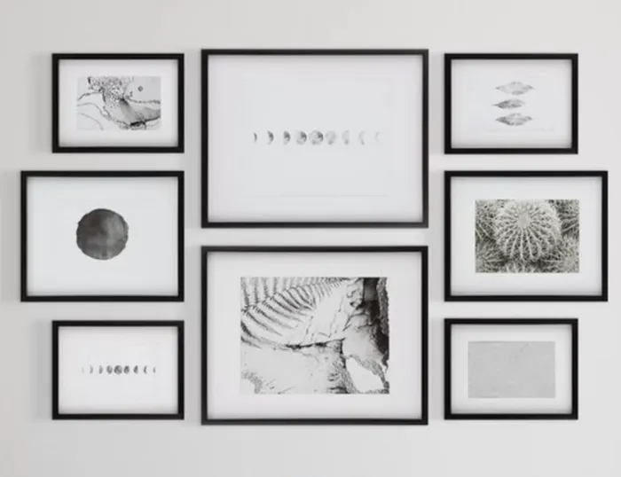 IKEA sells a great selection of frames. Consider the layout prior to putting up your pictures, and choose a selection of larger and smaller frames to create interest.
