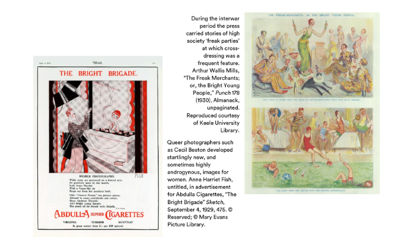 This was a time when openly homosexual sexual expression was illegal, but the worlds of glamour, fashion and art provided rich opportunities for the construction of queer spectacle such that the interwar period saw the appearance of startlingly new fashions for androgynous ‘freak chic’. Queer men gained important roles as photographers and designers working to creating glamorous images for women. This exhibition illustrates the complex ways in which images of women shaped and were shaped by those of men, and the role of both male and female empowerment in that process. Fashion and freakishness remained as attributes of homosexuals even after the vogue for queer style had waned and the word ‘gay’ was increasingly used as a term referring to sexuality. Britain’s interwar ‘freak chic’ remains important to contemporary debates over liberal values due to its resistance to moralism and its celebration of acts of transgressive self-expression..png)