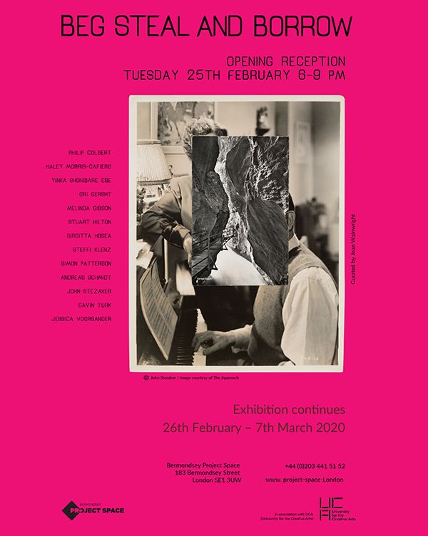Beg, Steal and Borrow opens on 26 February and runs until 7 March at the Bermondsey Project Space, 183-185 Bermondsey Street, London, SE1 3UW.