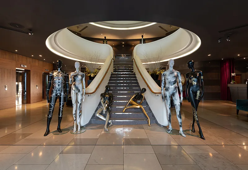 The luxury Aviator Hotel in Farnborough commissioned Priya to hand paint eight elegant mannequins as part of the hotel’s Christmas theming after an open call brief to all Year 2 fine art students at UCA Farnham.