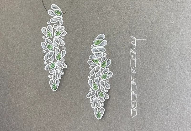 “In Hawaiian folklore, Peridots were believed to be the tears of the goddess of elements, Pele. They can also be found washed up on beaches, and hidden under sand,” explained Anita. “Because Peridots are often overlooked, I wanted my design to convey their hidden beauty – how they effortlessly capture the vivid hues of olive green. The earrings are designed in 18k white gold to highlight the colour of the Peridot gemstone and the earrings are shaped like a veil around the gems, alluding to its hidden nature.”