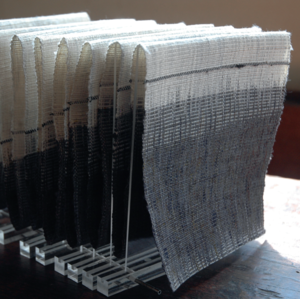 The exhibitions were entitled Tansa (探査): Japanese Threads of Influence and featured miniature textiles, no bigger than 15cms. In Farnham there were several sold-out presentations, and although the Japanese artists could not visit the UK for the exhibitions, a video of four artists in their studios – Professor Hiroyuki Shindo, Professor Yasuko Fujimoto, Professor Chiyoko Tanaka and Professor Jun Tomita – was also shown. Included in the exhibition was work by Yasumasa Komiya, the first time the work of a Japanese National Living Treasure has been exhibited in the UK.