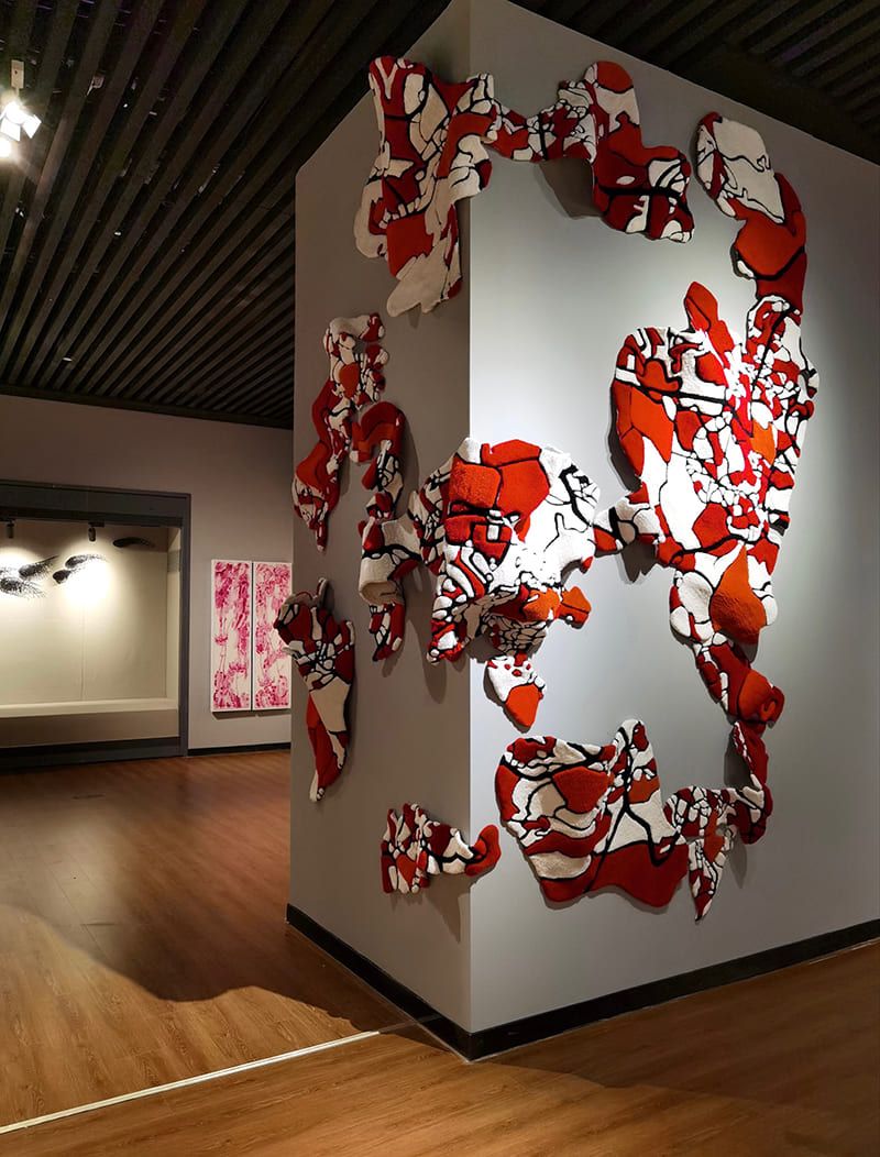 Alongside Vice-Chancellor Makhoul, work by Peipei Yu, Head of School for UCA’s International College, Sharon Ting, Programme Director for Textiles, and Gordon Hon, Professorial Fellow for the School of Fine Art, Crafts & Photography, will be on display.